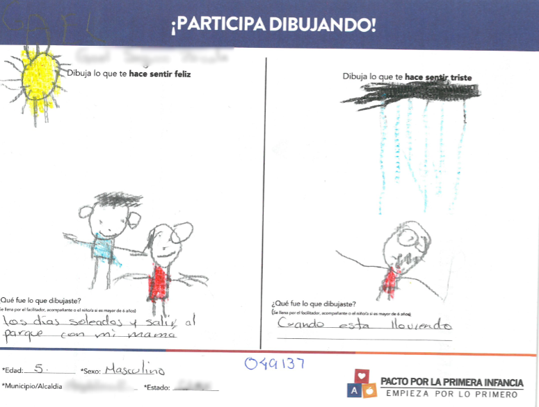 - Constituye un ejercicio que reconoce a la escucha de las niñas y los niños mexicanos en primera infancia para manifestar las principales causales de felicidad o tristeza que experimentan.