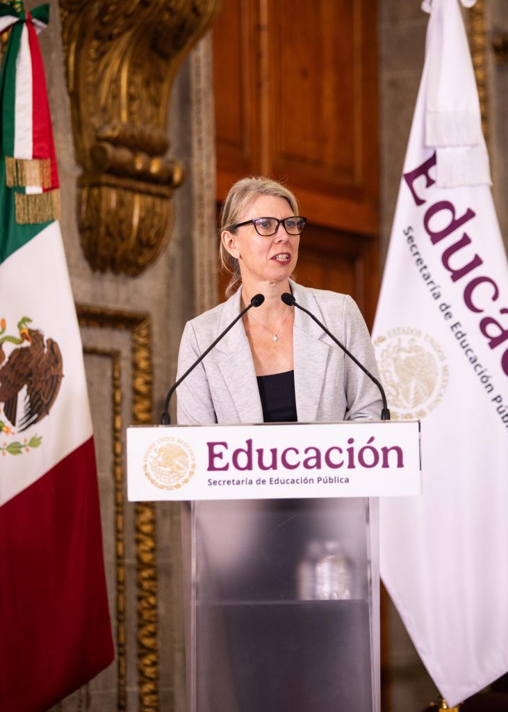 Por su parte, la jefa de Educación de Unicef, Astrid Hollander, comentó que la educación inicial es clave para asegurar trayectorias educativas completas, sociedades más prósperas y pacíficas. Reconoció a México como país pionero al hacer obligatoria esta etapa y reafirmó el compromiso de UNICEF para trabajar con la SEP para fortalecer servicios escolarizados y no escolarizados a nivel nacional.